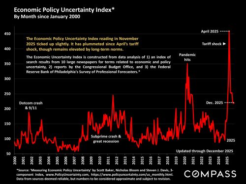 The July 2025 Economic Policy Uncertainty Index, released this morning, was essentially unchanged from June’s reading: It plummeted from April’s extreme peak, but remains very high by long-term norms.
