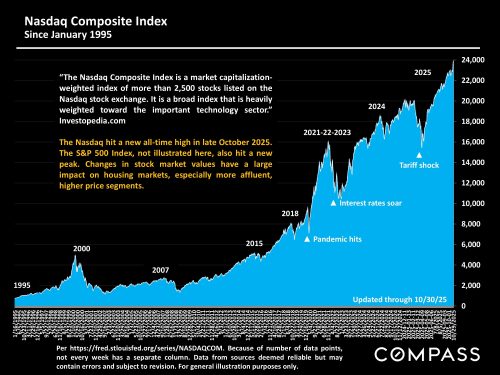 A broad overview comparing changes in the S&P 500 Index to Bay Area luxury home sales volume, since stock markets began their huge rebound in late 2023.